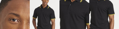 Contrasting tipping on collar and cuffs. 2-button placket with dyed-to-match buttons. Size tab label. Spare button. Cuffed sleeves. 1x1 ribbed flat collar and cuffs. Stylish and modern fit. Taped neck. Twin-needle stitching on sleeves and hem. Short sleeves. Worldwide Responsible Accredited Production (WRAP) certified production.Washing InstructionsMachine wash 30°. Do not bleach. Tumble dry possible at low heat. Cool Iron. Do not dry clean. Wash dark colour separately.